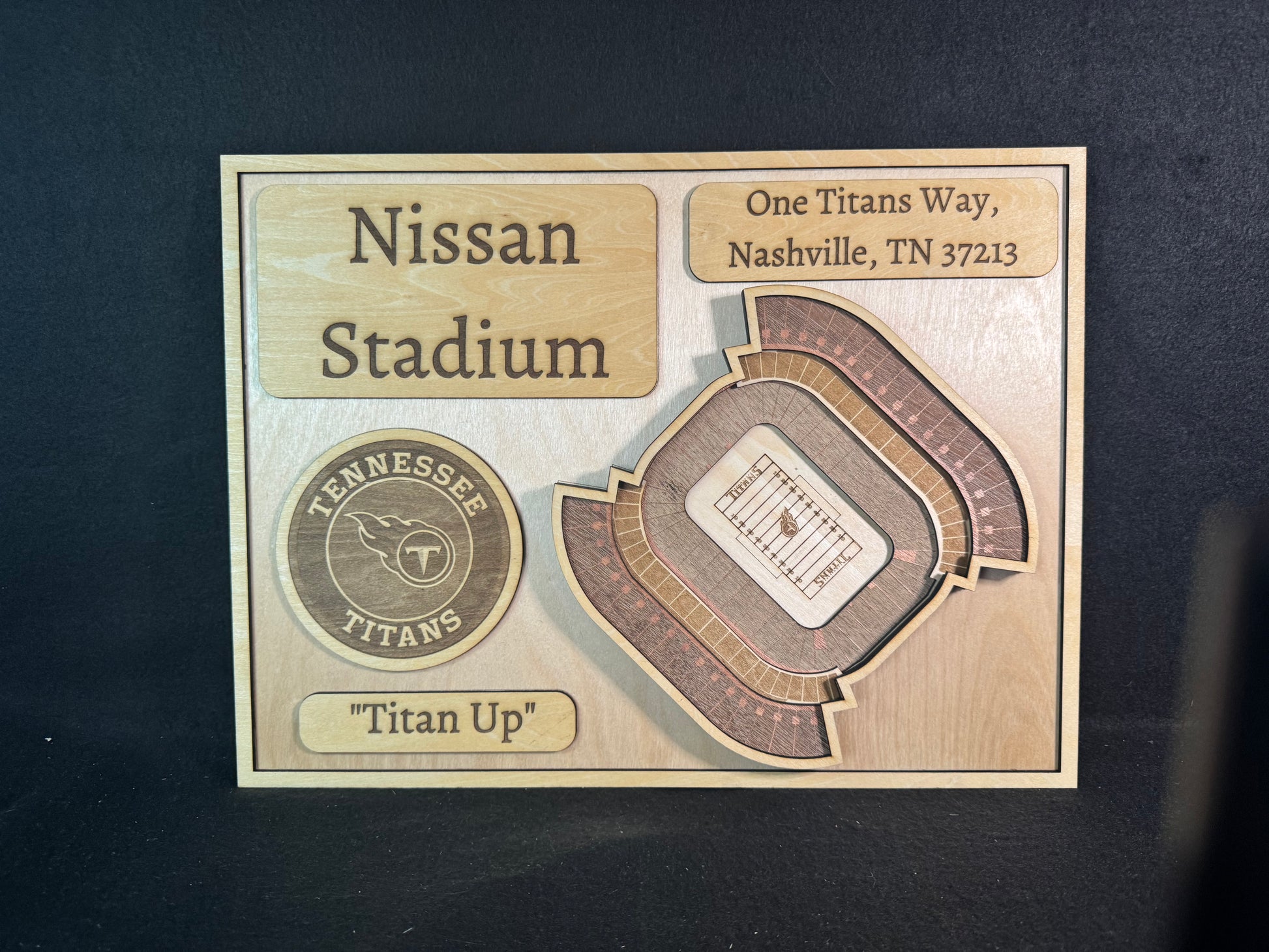 Nissan Stadium 3D Layered Wood Art - Tennessee Titans Football (Handmade)