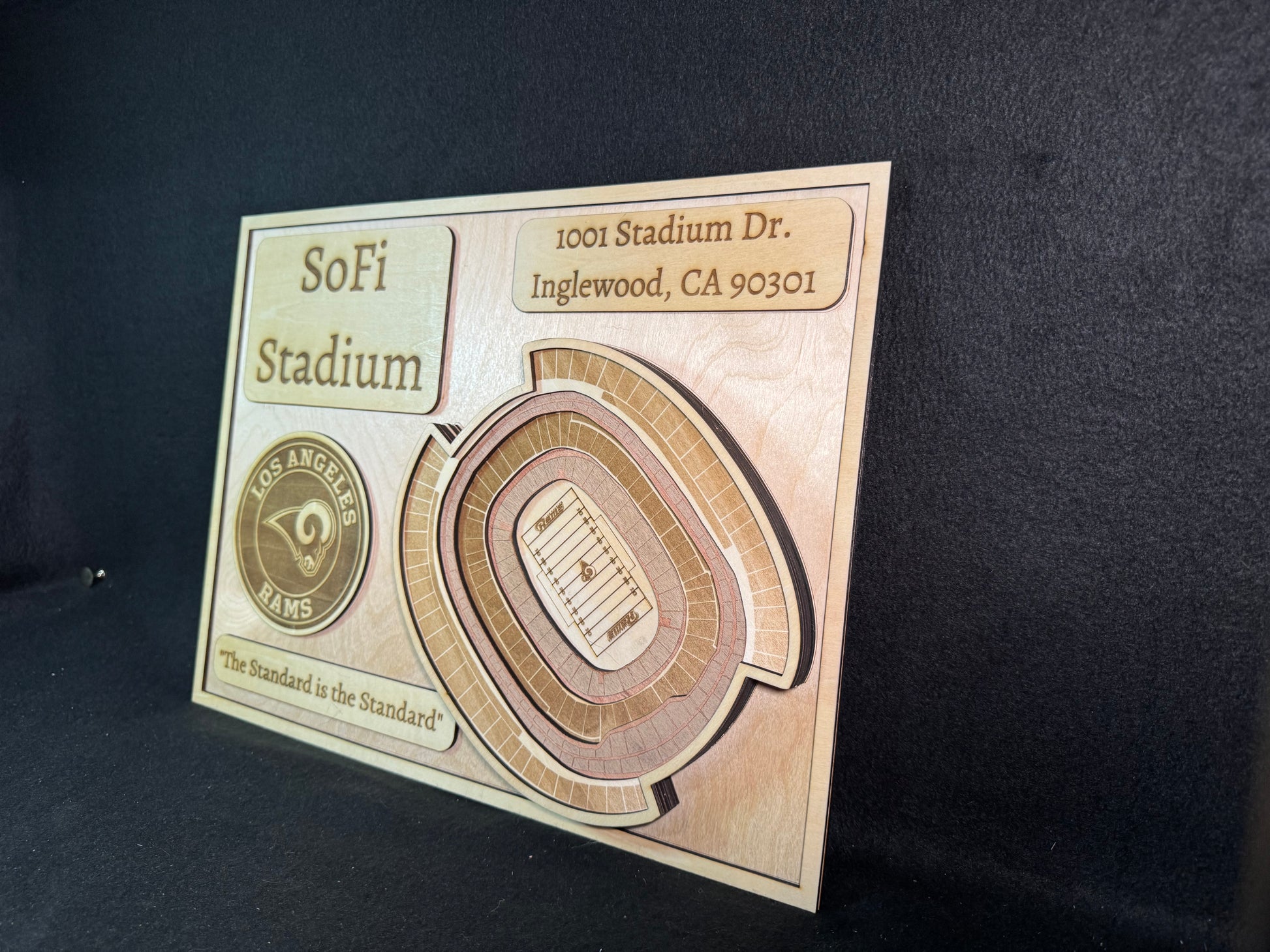 SoFi Stadium 3D Layered Wood Art - Los Angeles Rams Football (Handmade)