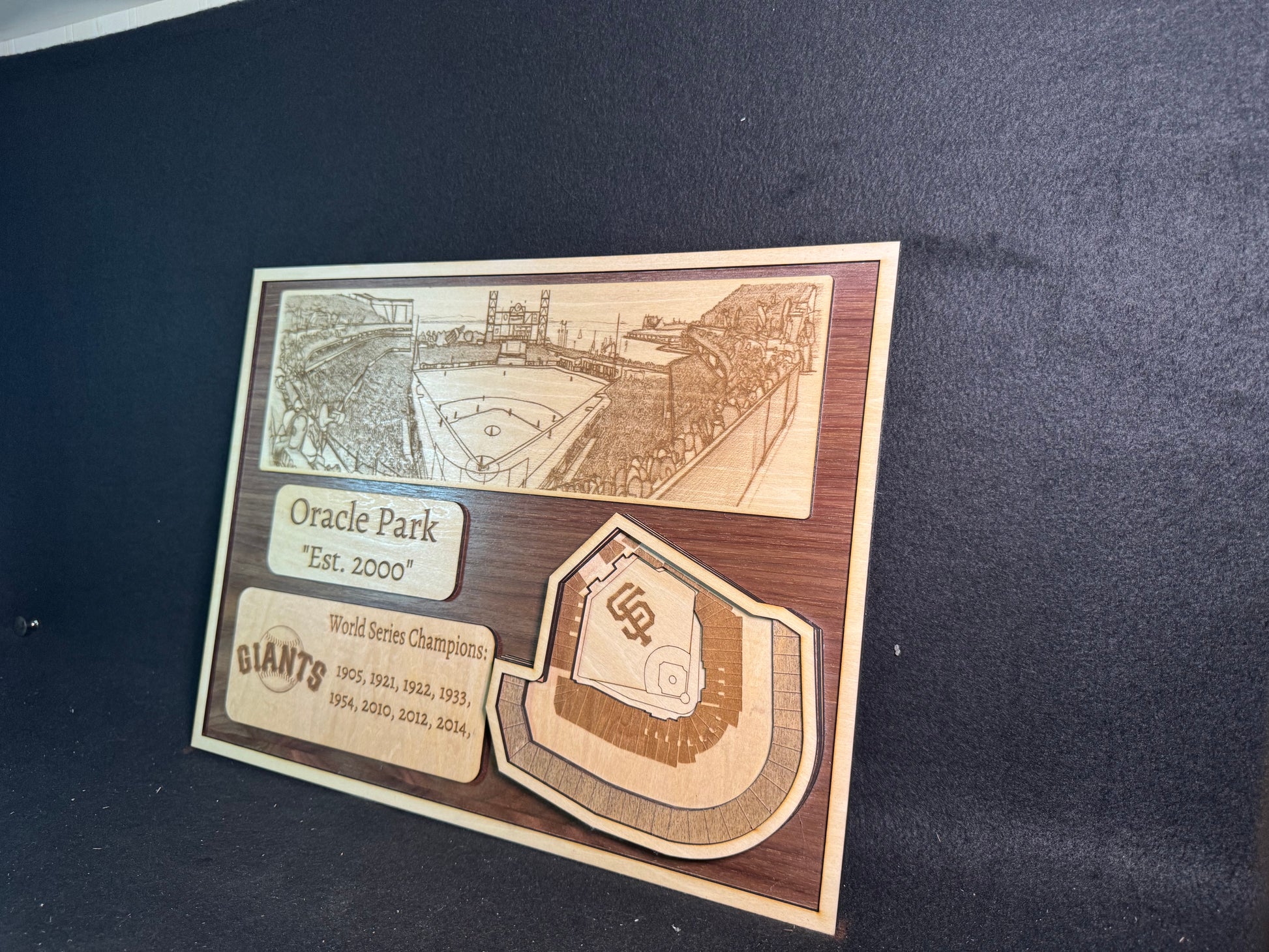 This handcrafted 3D layered wood piece captures the architecture, history, and energy of Oracle Park — designed for fans who want more than a poster.